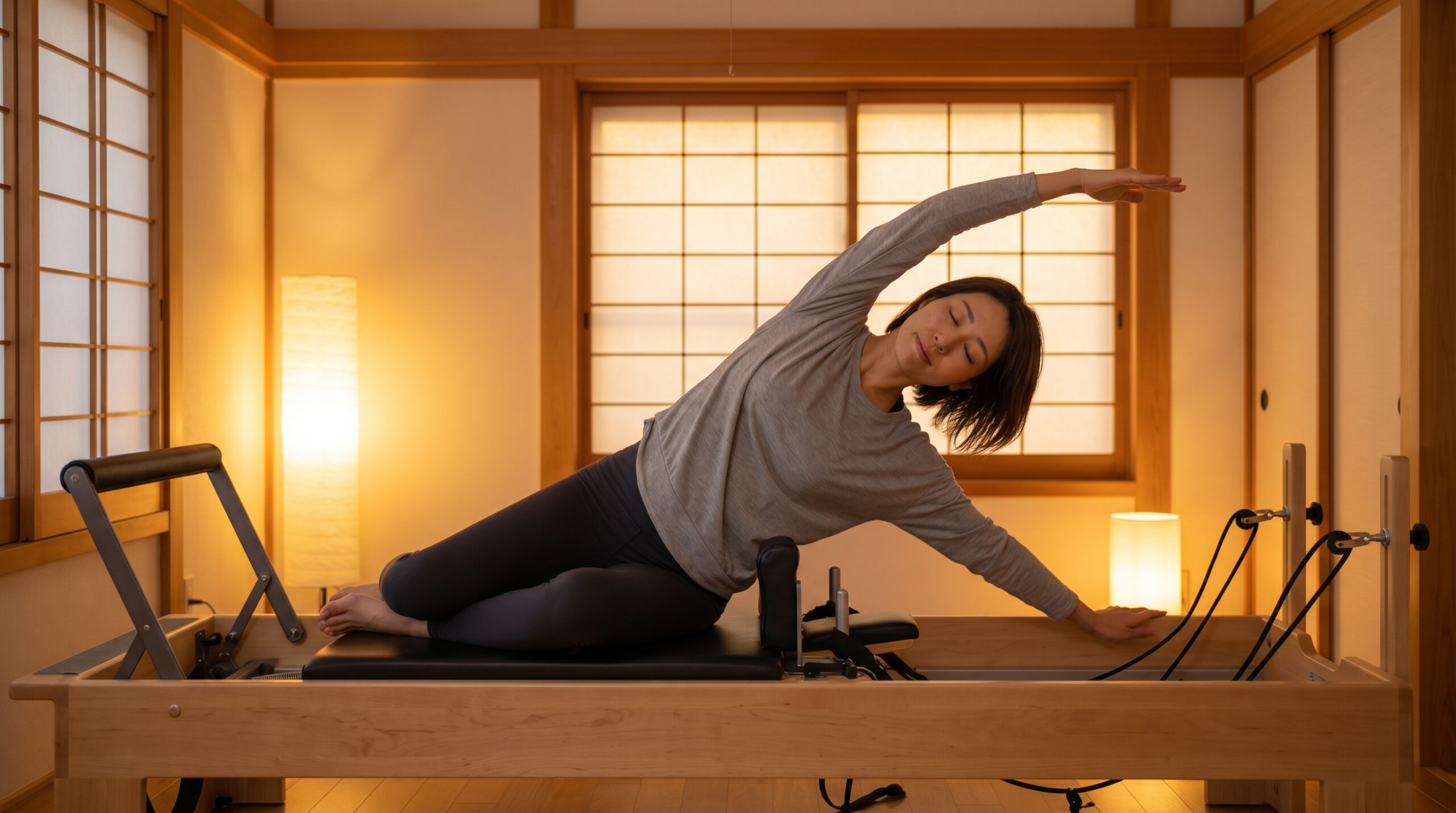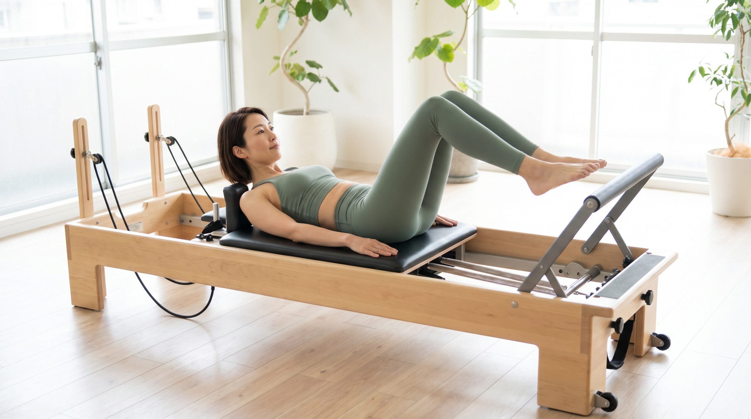 - 梨状筋が硬いクライアントはフットバーを下げて調整する。または、無理に体を倒さず脚を載せ骨盤をニュートラルに保つだけでもストレッチされる。