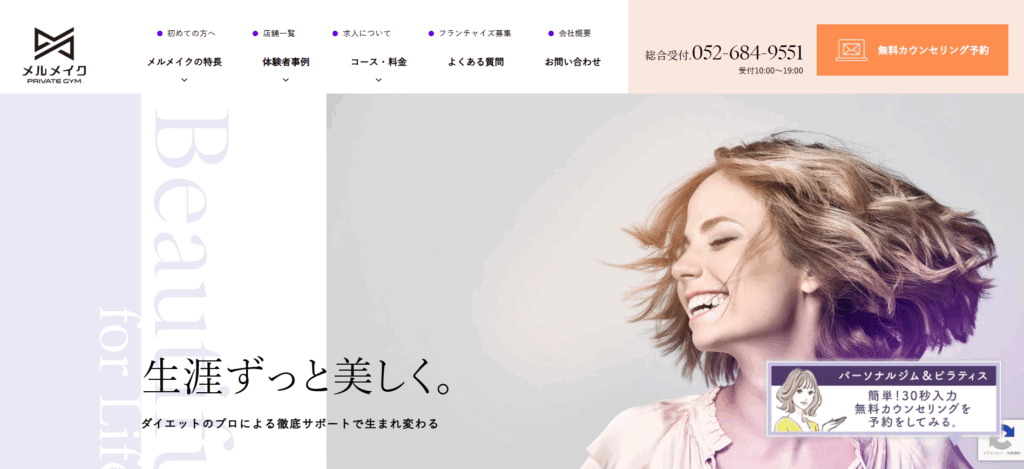 「メルメイク 名駅店」は、完全個室のパーソナルトレーニング&マシンピラティススタジオです。