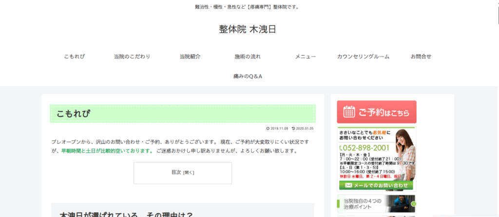 「整体院木洩日」は、難治性・慢性・急性などの痛みに特化した、疼痛専門の整体院です。