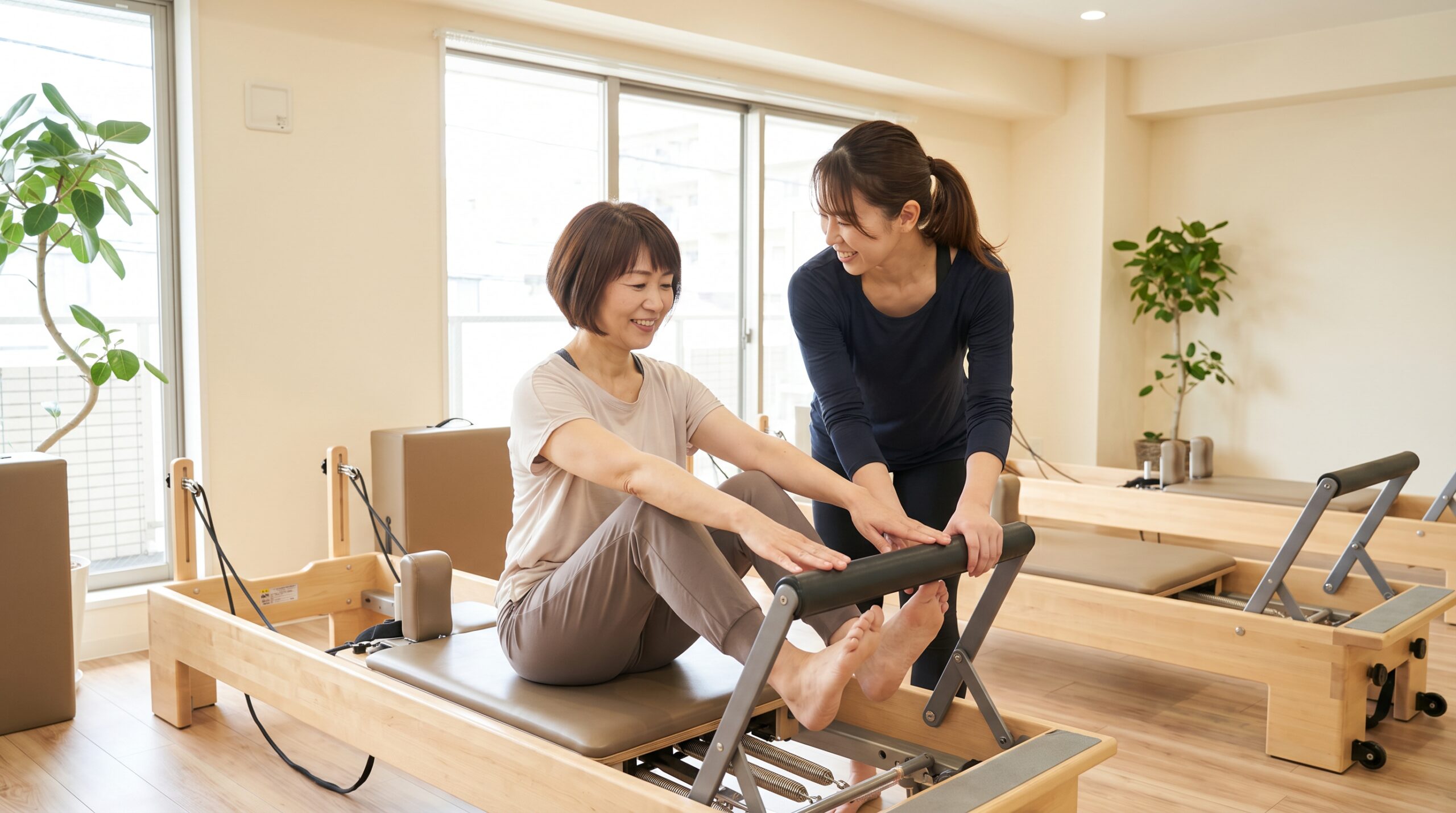 筋力が低下している40代・50代の方こそ、マシンが動きをサポートしてくれるマシンピラティスが適しています。