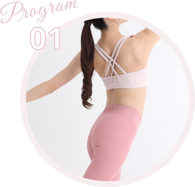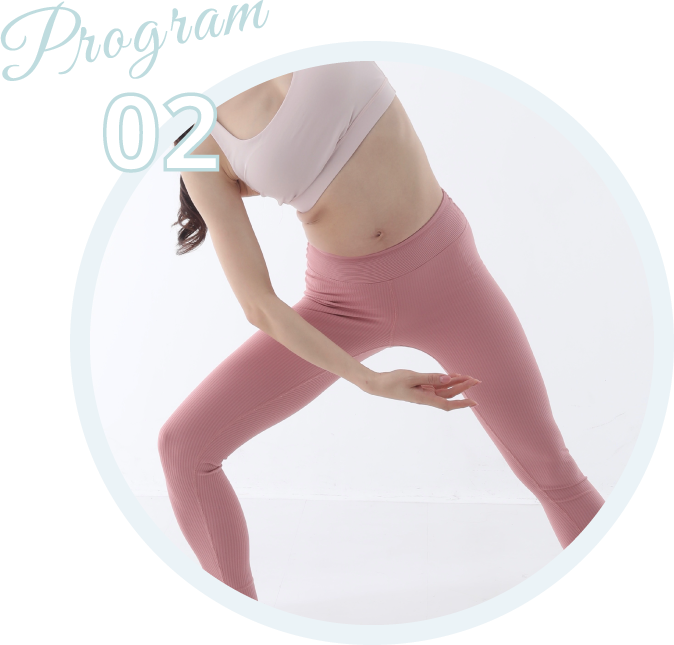 バレエの動きを取り入れ、軽い負荷で流れるように体を動かしながら、体の歪みを整えしなやかなボディラインへ導きます。